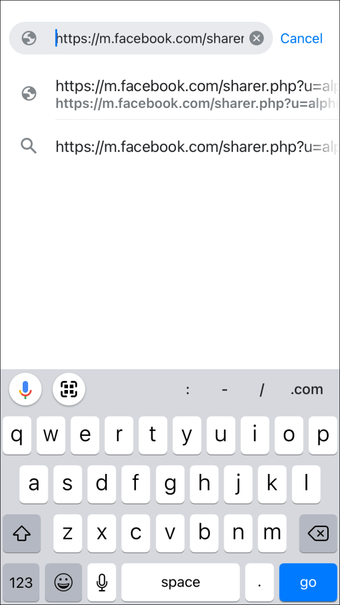 https://m.facebook.com/sharer.php?u=yourlinkhereen la barra de direcciones. En lugar de «yourlinkhere» inserta la URL completa del enlace que deseas añadir a tu historia.