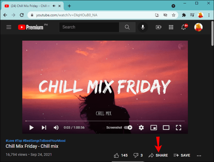 Como YouTube está conectado a Facebook, puedes utilizarlo para añadir un enlace de vídeo a tu historia. Para este método, es crucial que no utilices la aplicación de YouTube, sino que la abras desde el navegador y utilices la vista de escritorio. De lo contrario, la opción de compartir en Facebook no estará disponible.