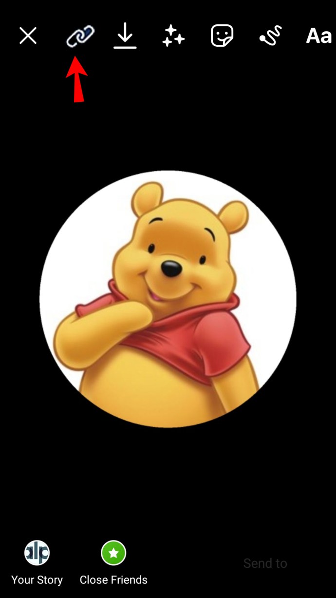 - Haz o sube una foto a tu historia, pulsa el botón icono de eslabón de cadena en la parte superior, y pega el enlace del primer paso debajo de Enlace web.