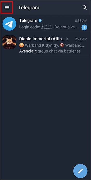 - Inicia la aplicación Telegram y toca las tres líneas apiladas en la esquina superior izquierda.