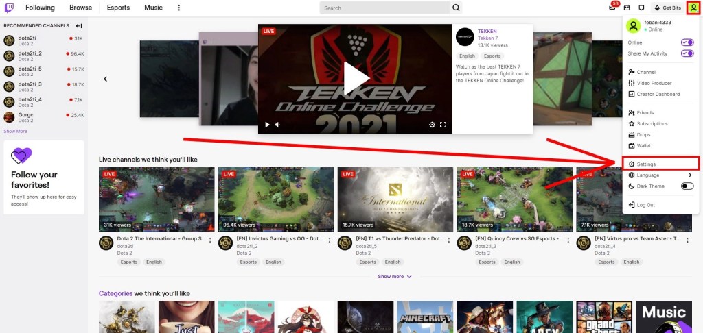 El primer paso es ir a la configuración de tu cuenta en Twitch.