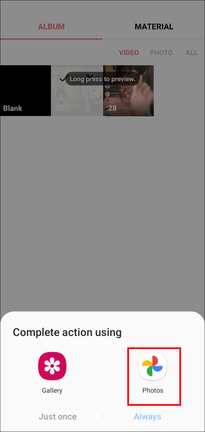 - Toca la miniatura/icono «Vídeo» para buscar y seleccionar el vídeo de YouTube descargado/editado.