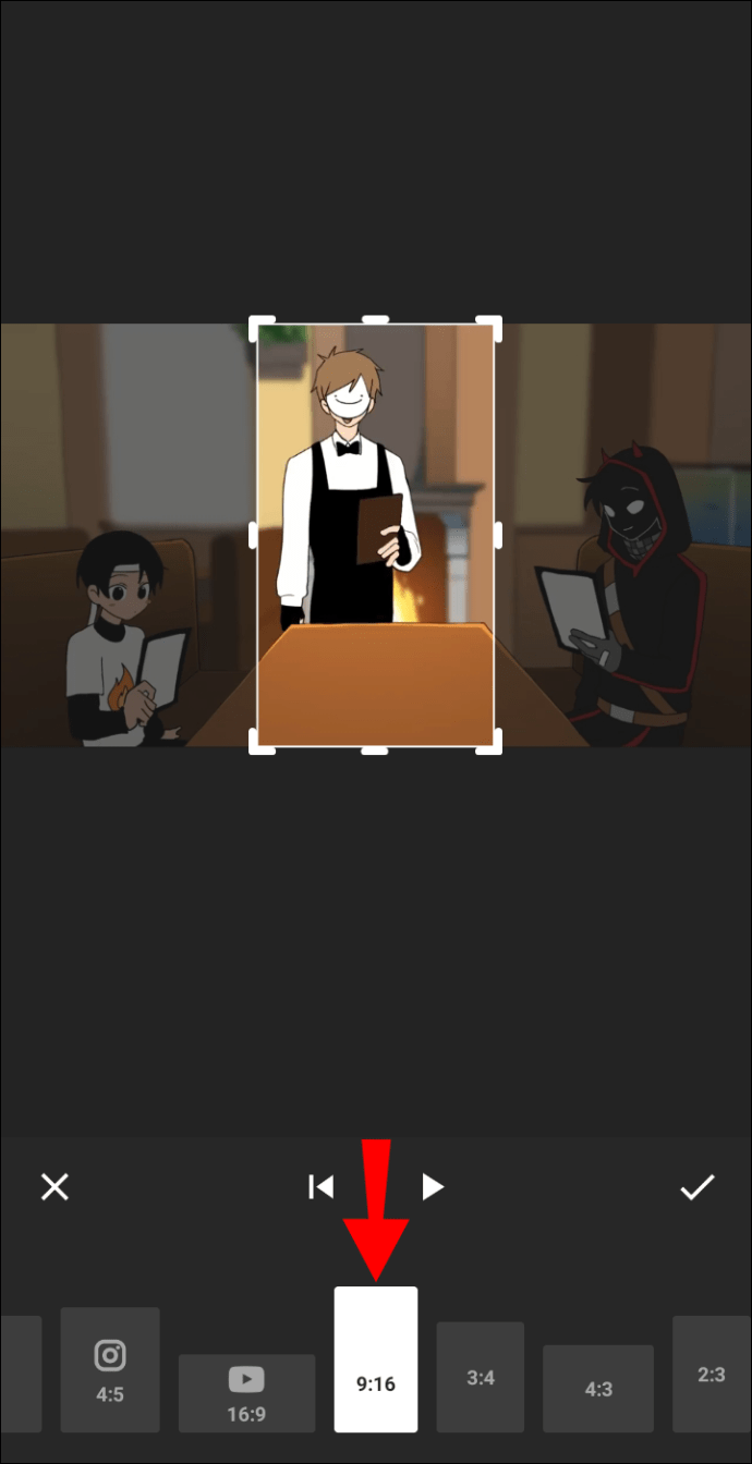 - Elige la opción «1:1» o «9:16» relación de aspecto.