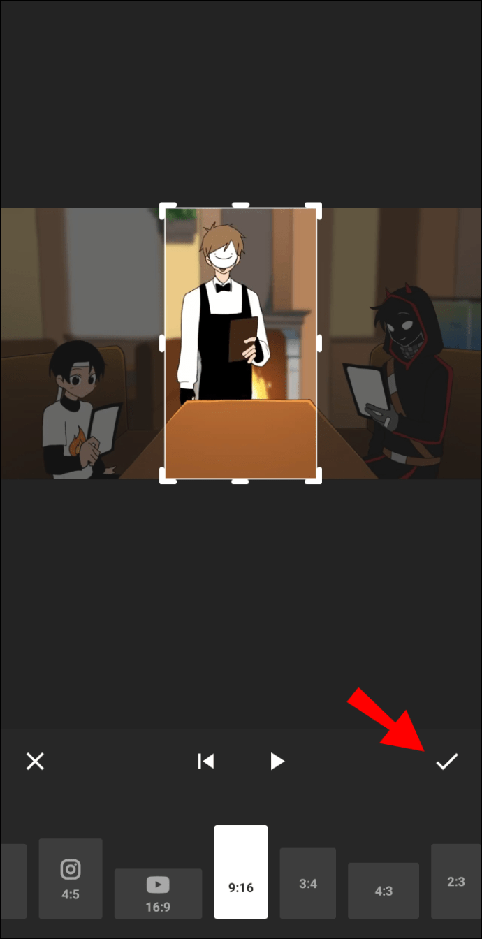 - Selecciona el «Cultivo» situada en la parte inferior de la pantalla para ajustar el encuadre del vídeo.