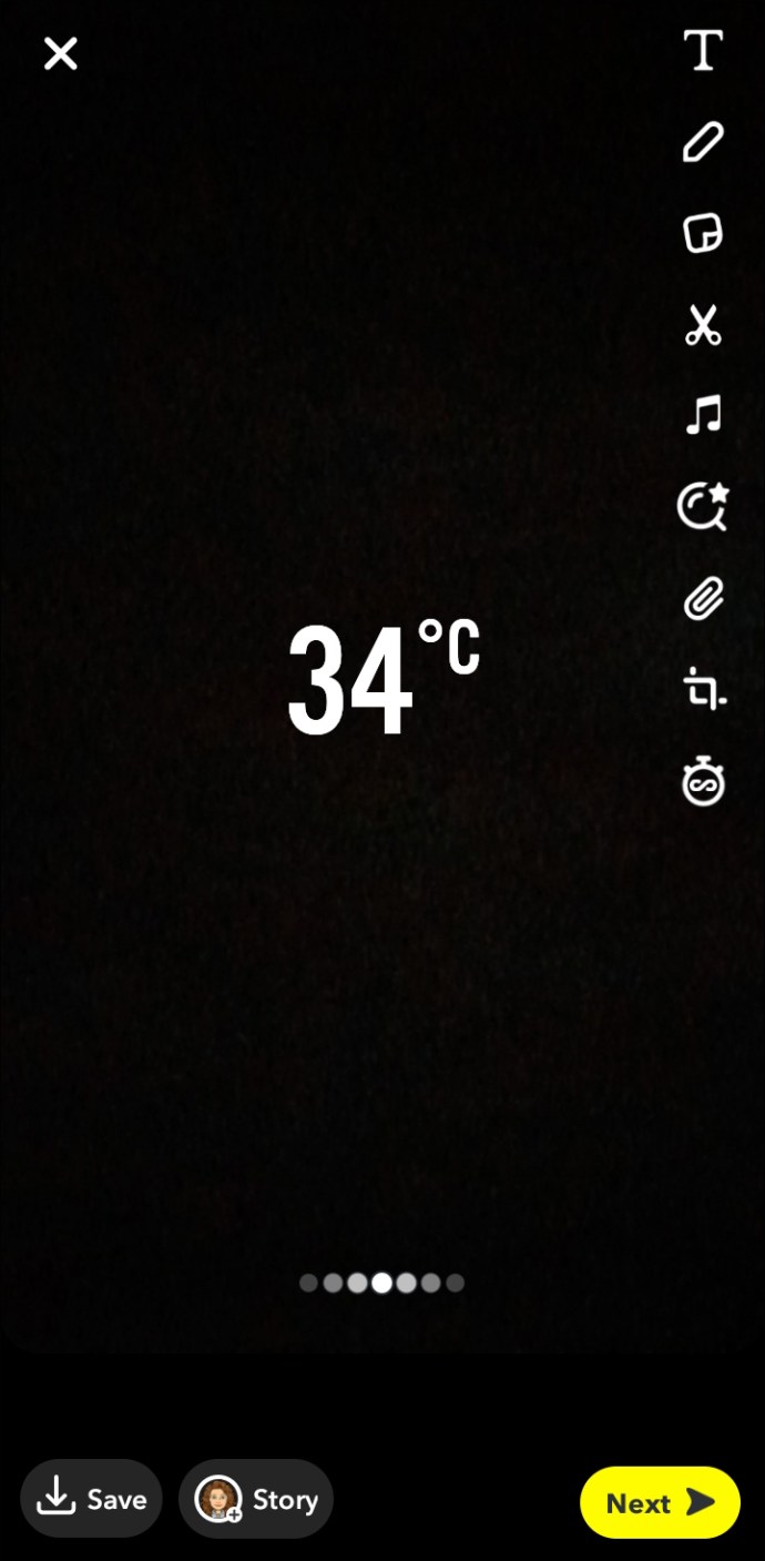 Snapchat superpone entonces la pegatina de la temperatura en la instantánea, que se puede personalizar y compartir con amigos en la aplicación. Es importante tener en cuenta que la exactitud de la temperatura mostrada en Snapchat depende de la exactitud de los datos del proveedor meteorológico y de los ajustes de ubicación del usuario.