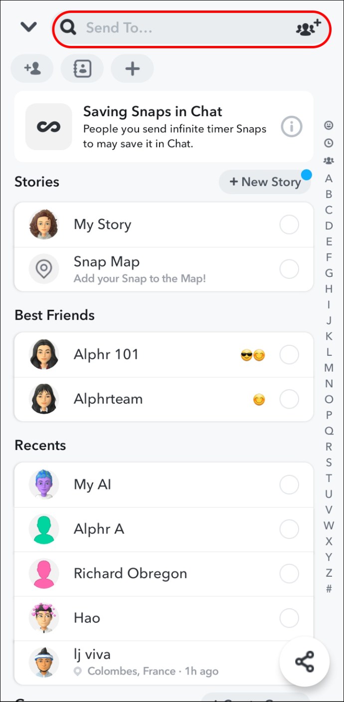 - Por último, puedes compartirlo como una historia de Snapchat o hacer clic en el botón «Enviar a» y elegir los destinatarios.