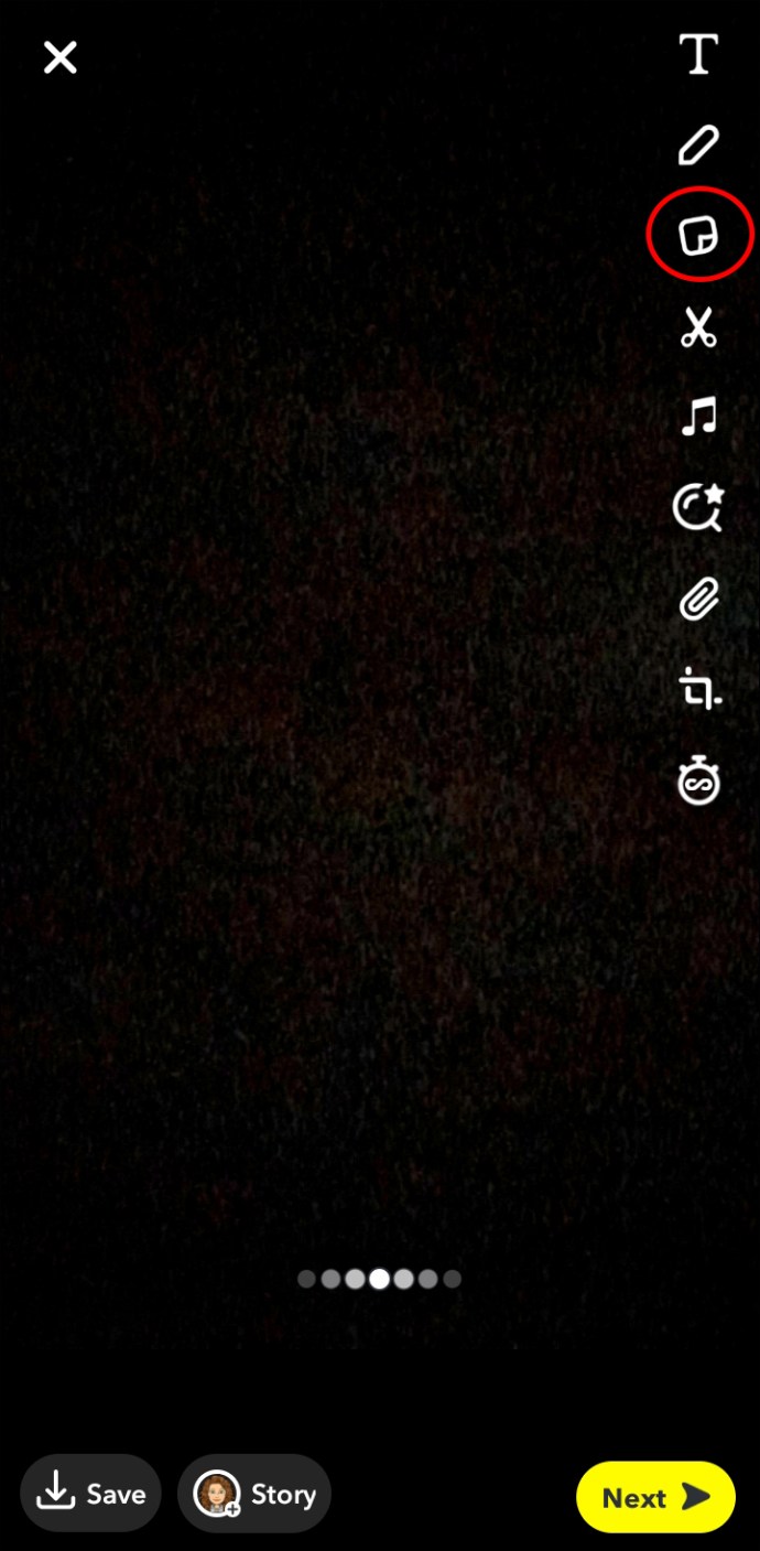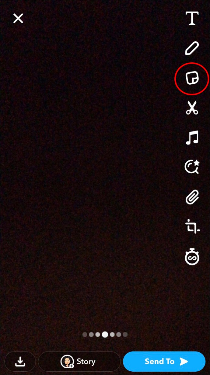 - Toca el icono de pegatinas situado en la barra de herramientas de la derecha.