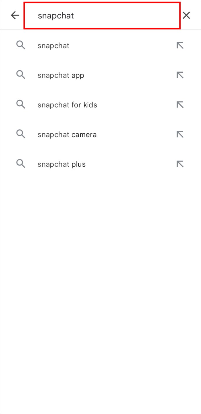 - Escribe «Snapchat» en la barra de búsqueda y pulsa Intro.