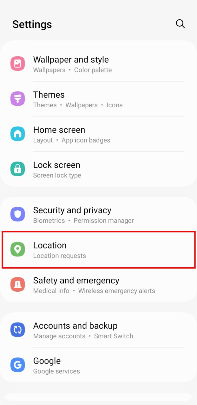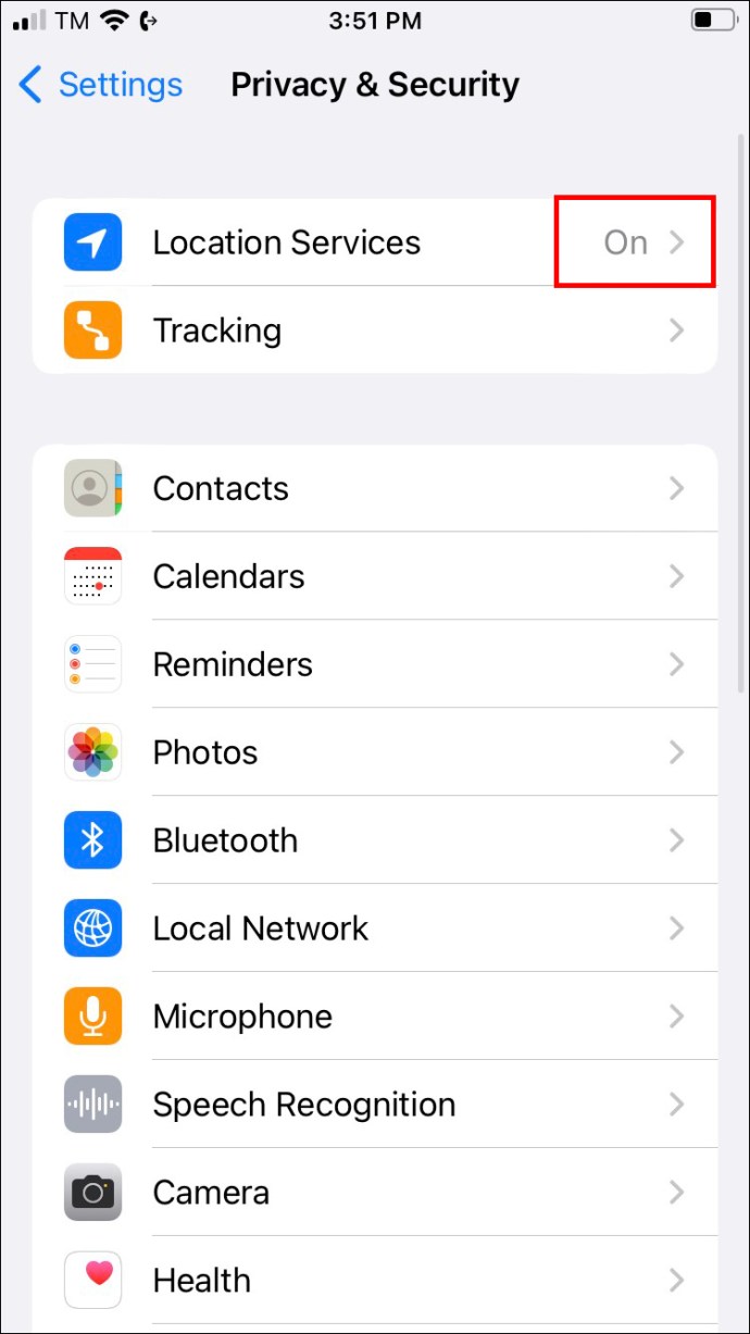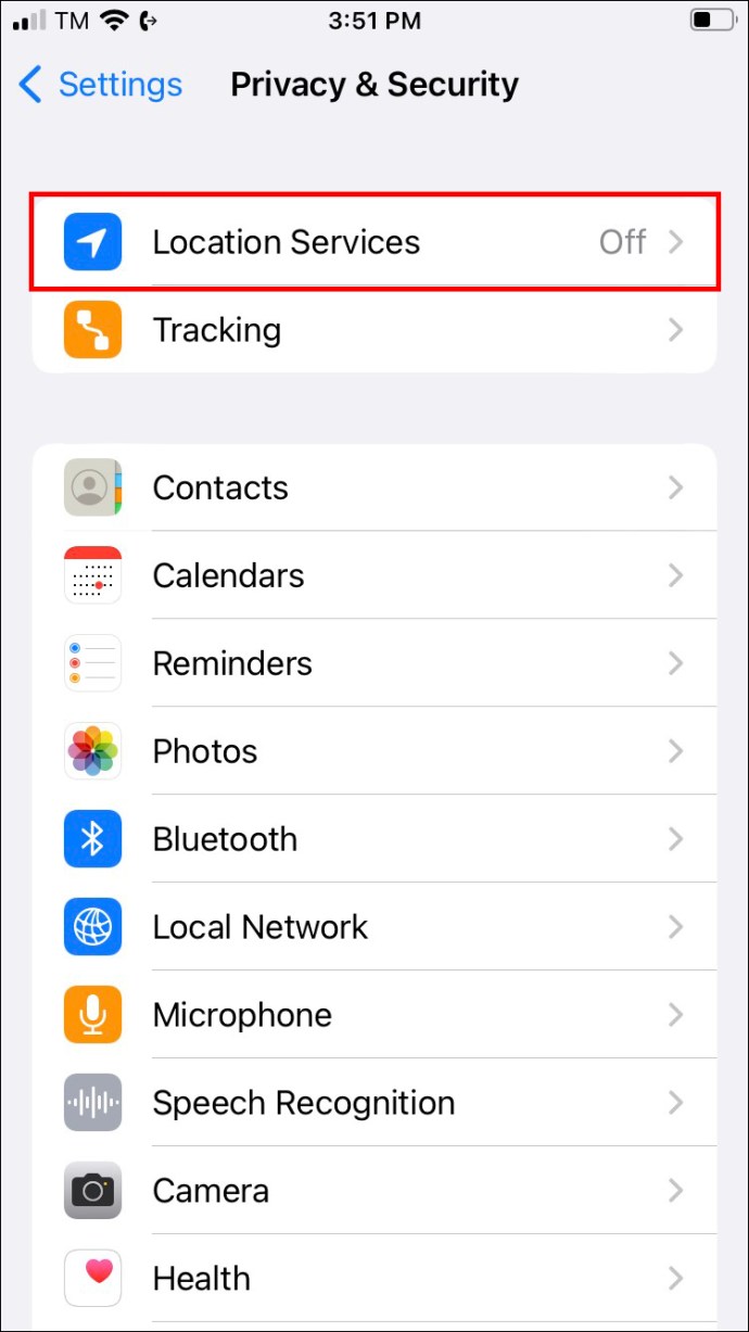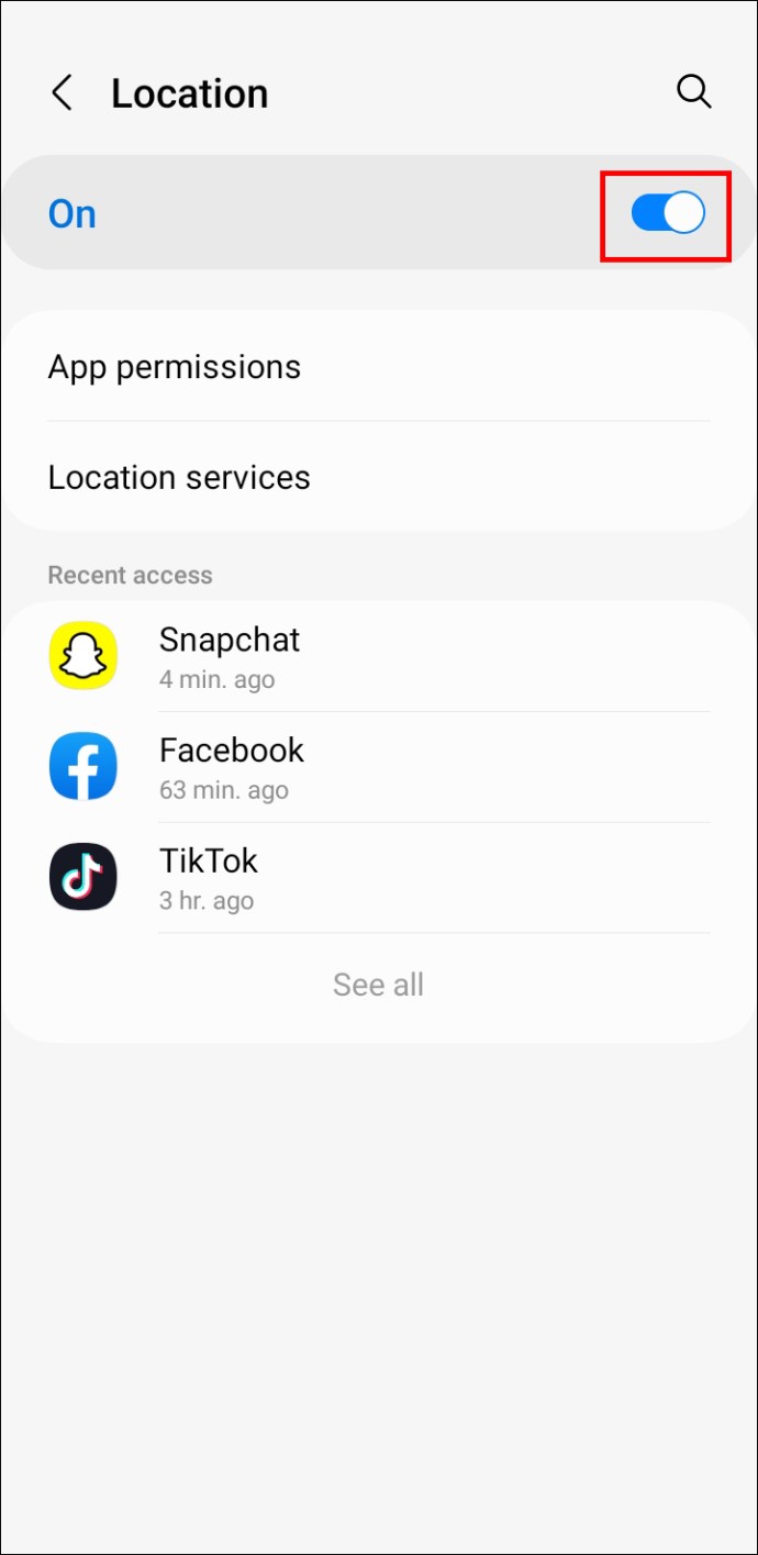 - Activa el botón de conmutación situado junto a «Servicios de localización» para activarlo.