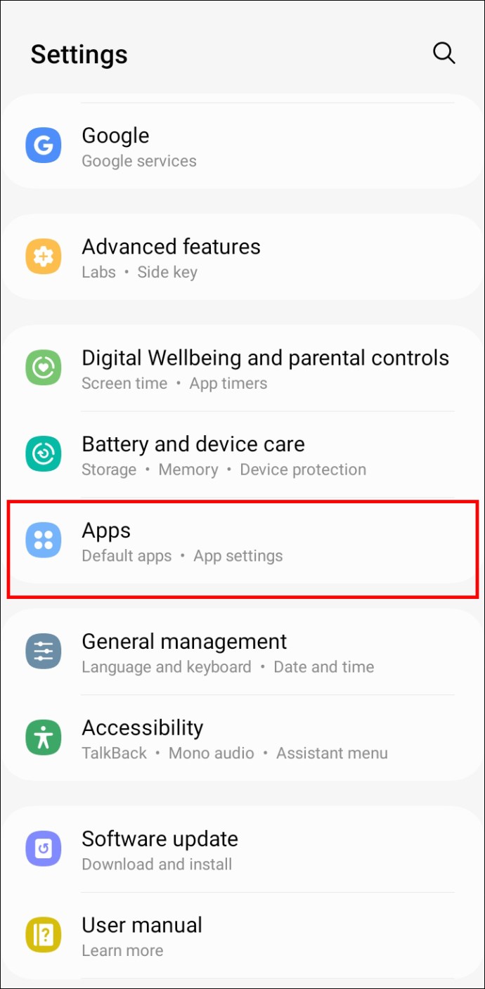 - Desplázate hacia abajo hasta encontrar la aplicación Snapchat y pulsa sobre ella.