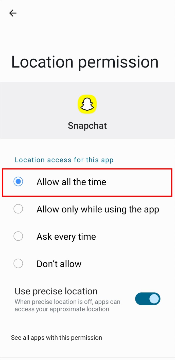 Si sigues teniendo problemas para encontrar el adhesivo de temperatura de Snapchat, es posible que tengas que dar permiso a la aplicación para acceder a la ubicación de tu dispositivo.