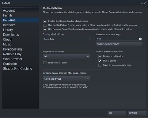 No hay ningún ajuste específico para desactivar la Sobreimpresión de Discord sólo para los juegos de Steam mientras se deja activada para otras bibliotecas de juegos. Desactivarlo a través de la opción Superposición, como se muestra arriba, también lo desactivará para Steam. Sólo tienes que seguir las instrucciones anteriores para Windows y Chromebooks. Sin embargo, Steam tiene su propia superposición que quizás quieras desactivar en su lugar. Para ello, sigue estos pasos: