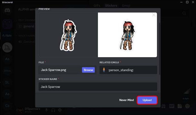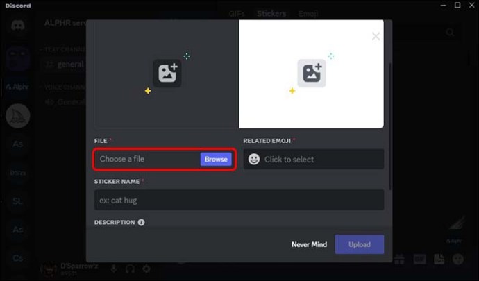 Por fin ha llegado el momento de utilizar tu nuevo Sticker en Discord. Primero súbelo a la plataforma: