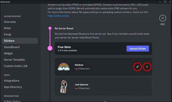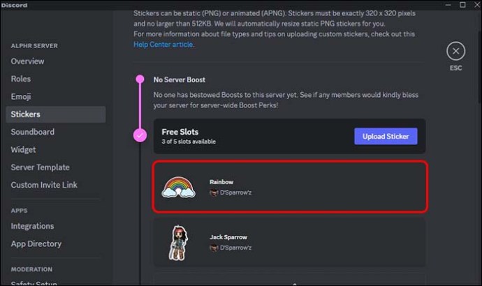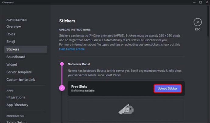 Para poder subir tu propio paquete de 15 pegatinas, tu servidor tiene que alcanzar el Nivel de Impulso 1. Además, tienes que ser el propietario de ese servidor o al menos un Moderador con permiso para utilizar Gestionar Emoji y Pegatinas. Una vez que obtengas los permisos, podrás empezar a subirlos.