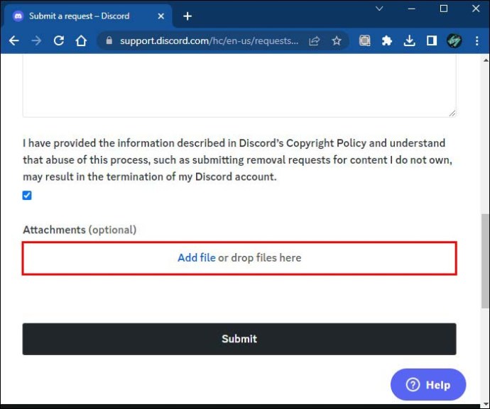 - Confirma que el contenido del que informas es realmente tuyo: si infringes la Política de derechos de autor de Discord, se cancelará tu cuenta.