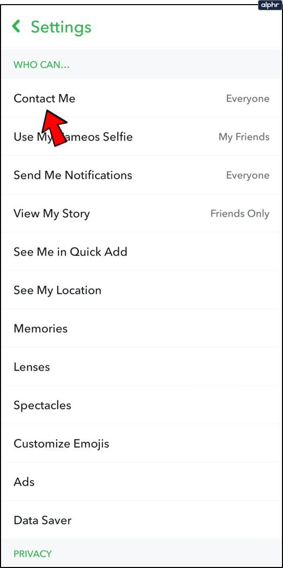 - Desplázate hacia abajo y elige «Contacta conmigo» en «CONTROL DE PRIVACIDAD».