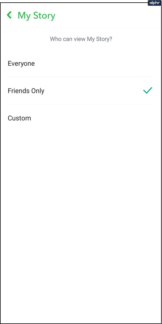 Puedes permitir que sólo tus amigos vean tu historia. Esto significa que la gente tiene que seguirte, Y tú tienes que seguirles a ellos antes de que puedan ver tu Historia de Snapchat.