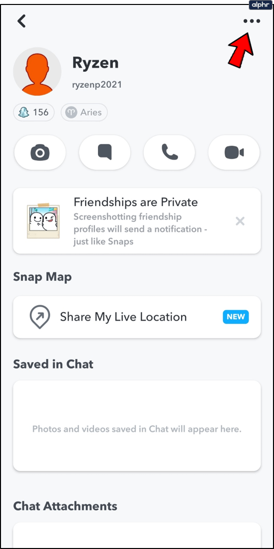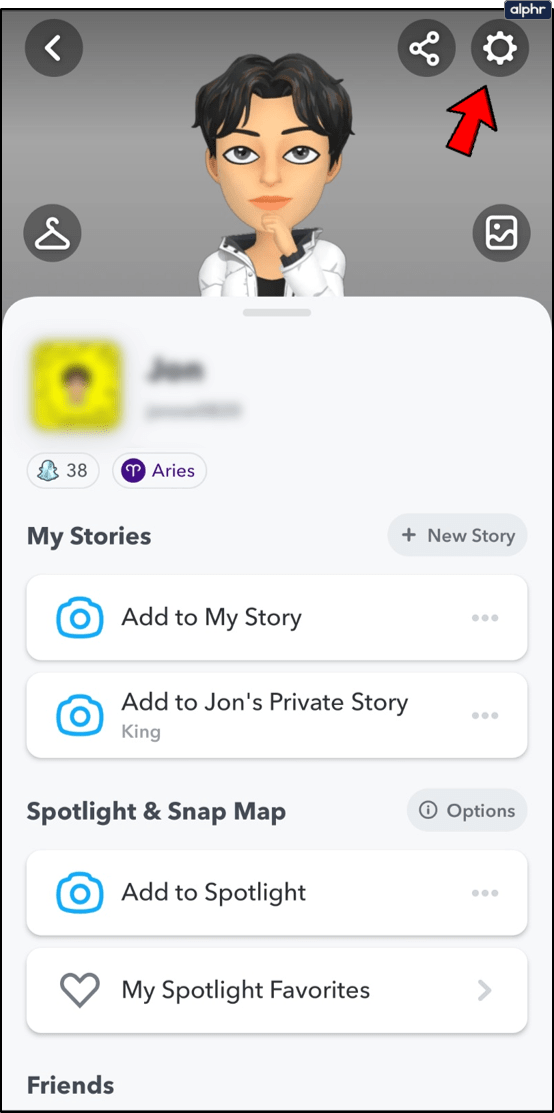 - Toca en tu «perfil» en la esquina superior izquierda. Si utilizas Bitmoji, se parecerá a tu bitmoji.