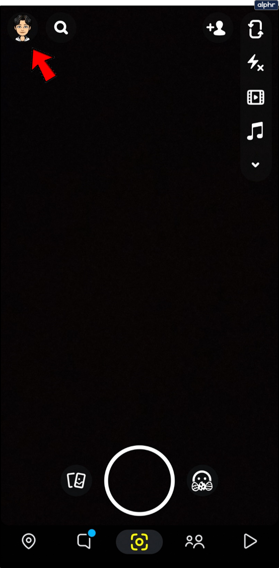 - Toca en tu «perfil» en la esquina superior izquierda. Si utilizas «Bitmoji», se parecerá a tu bitmoji.