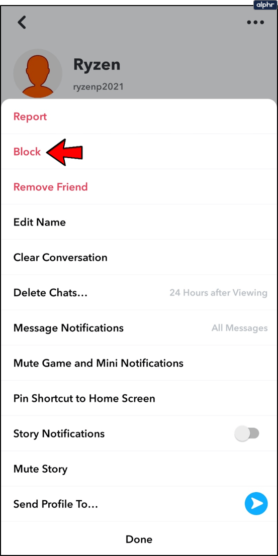 Supongamos que no quieres hacer esto. Tienes muchos seguidores a los que no sigues, y te gusta recibir de ellos algún «snap» ocasional. ¿Cómo puedes evitar que este usuario te «chasquee»? La respuesta es sencilla. Bloquéalo.
