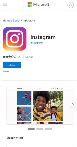 - Descargar la aplicación de escritorio de Instagram desde Microsoft Store.