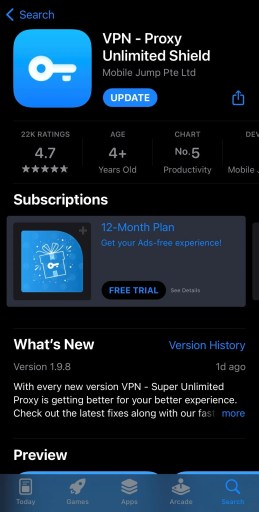 - Descarga una aplicación VPN gratuita como «VPN – Super Unlimited Proxy».