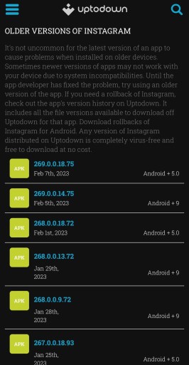 2. Ve a https://instagram.en.uptodown.com/android/versions.