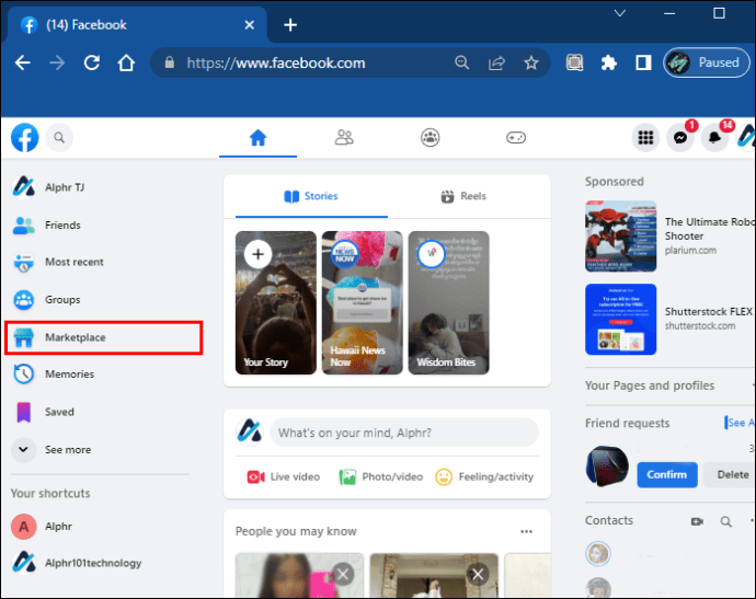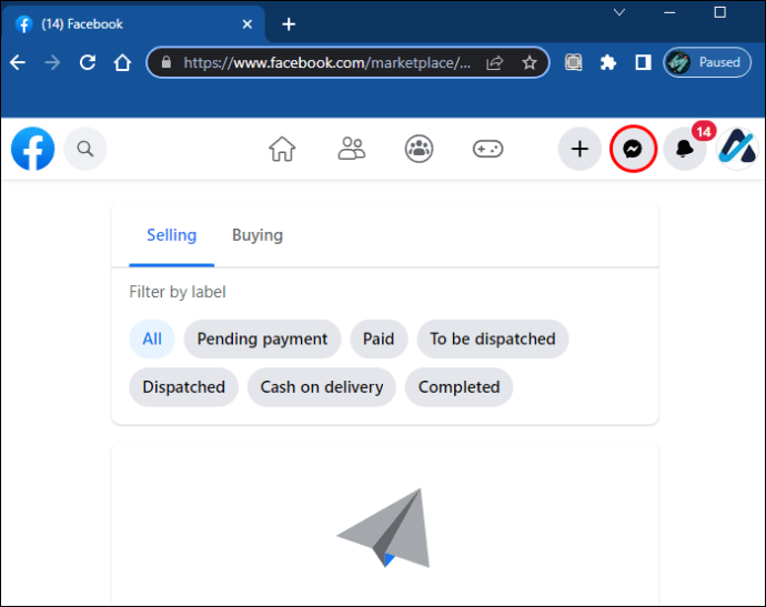 4. Alternativamente, haz clic en el icono de Messenger en Facebook para encontrar tus mensajes del Mercado.