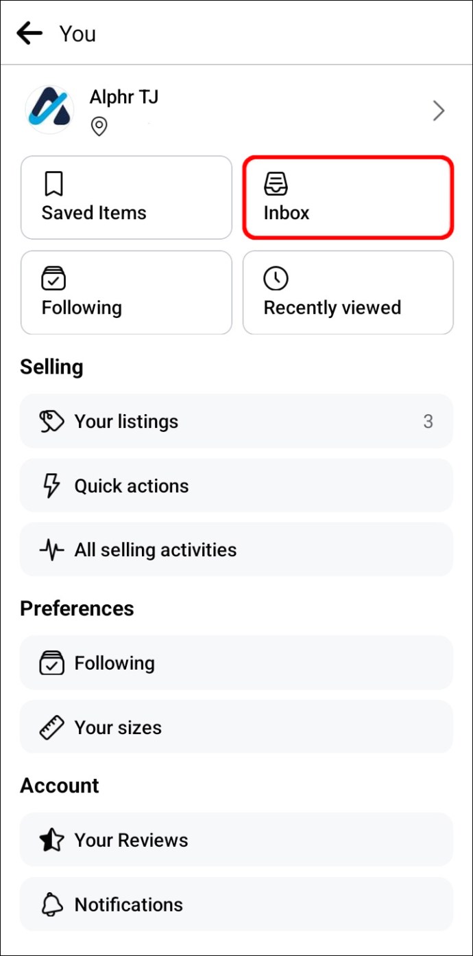3. Busca tu bandeja de entrada bajo el título principal del Mercado.
