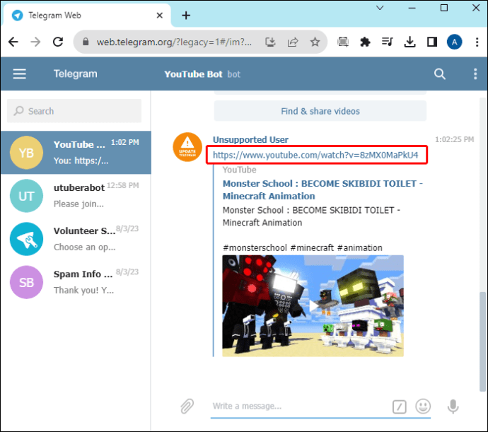Usar bots de Telegram para descargar contenido de YouTube